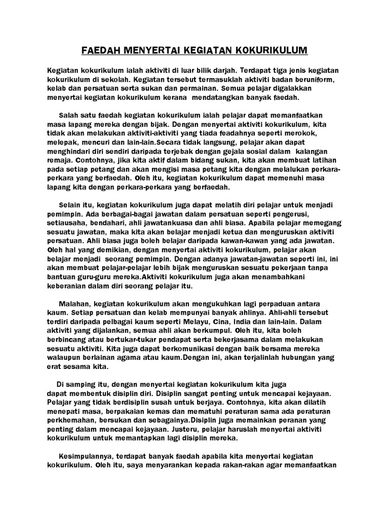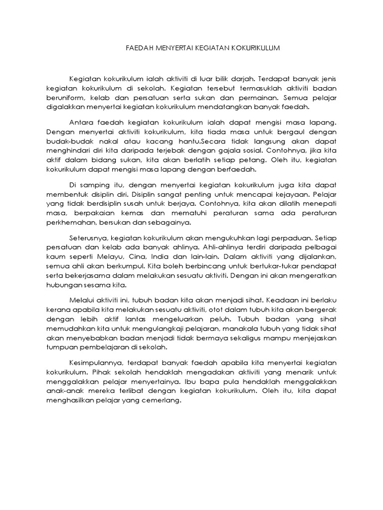 Karangan Faedah Menyertai Kegiatan Kokurikulum Pdf