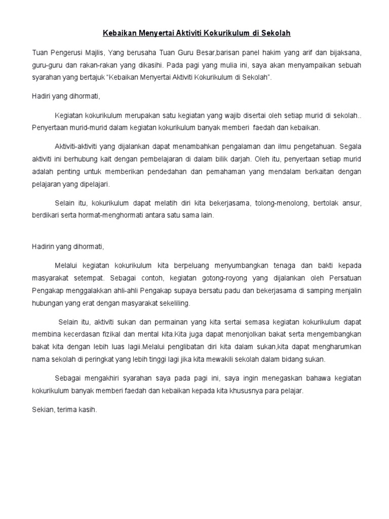 Syarahan Kepentingan Menyertai Aktiviti Kokurikulum Pdf